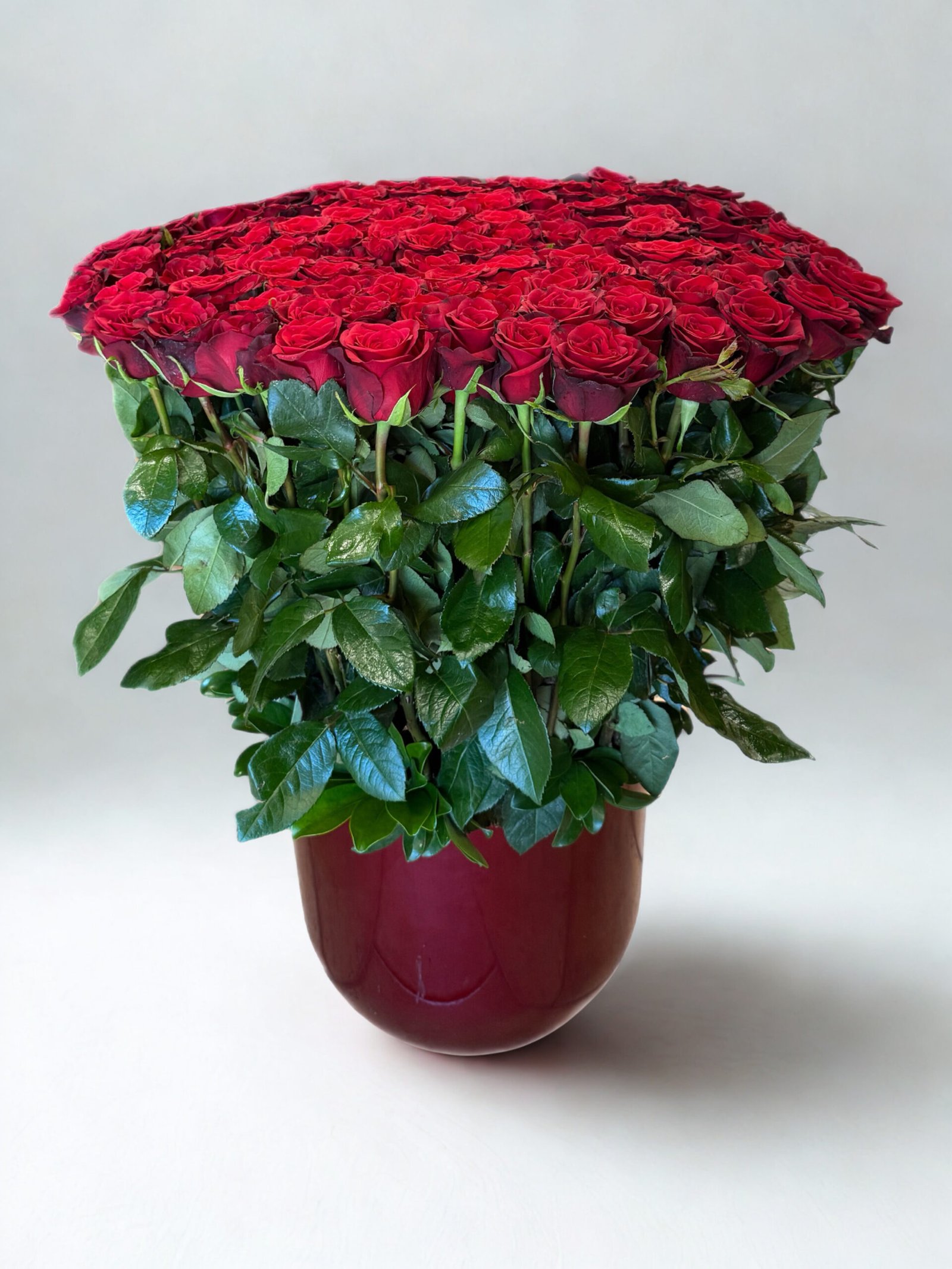 A luxurious arrangement of premium red roses, beautifully styled in a deep red vase. Timeless, bold, and full of passion—perfect for Valentine’s Day or any unforgettable romantic gesture.